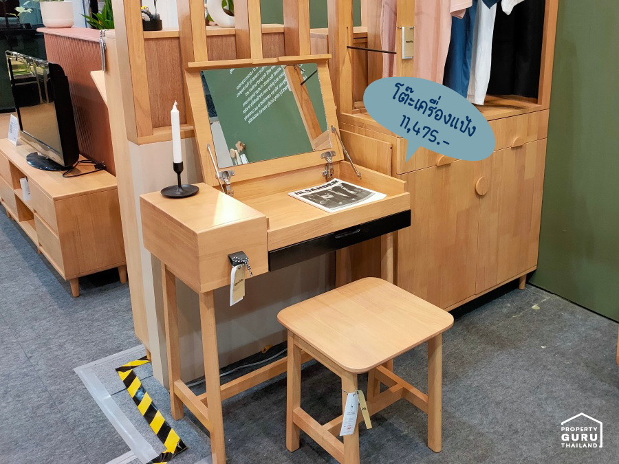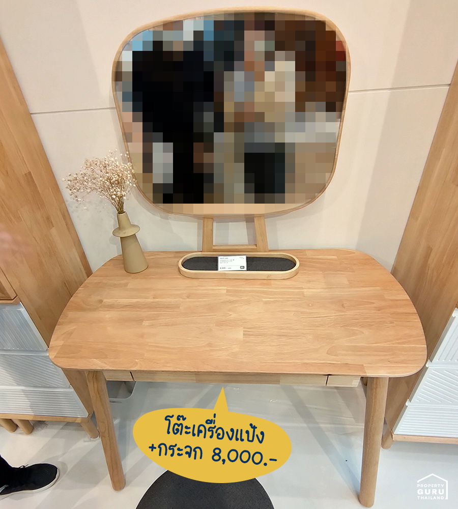 โต๊ะเครื่องแป้งไม้ยางพาราจากร้าน Easy Cozy ถ้าไม่เอากระจก ราคาก็ลดลงด้วยค่ะ สอบถามกับทางร้านได้เลย