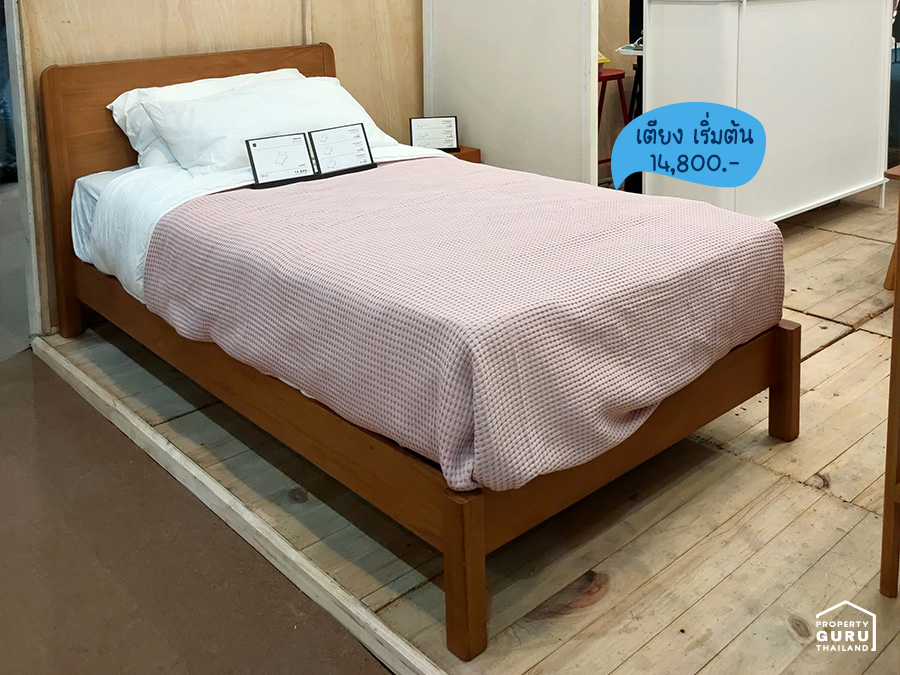 เตียงฐานไม้ จากร้าน Flo มีให้เลือกทั้ง 3, 5, และ 6 ฟุต เริ่มต้นที่ 14,800 บาท