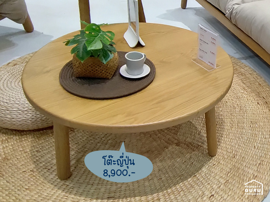 โต๊ะญี่ปุ่นจากร้าน Hari Ora ใช้เป็นโต๊ะรับแขกก็ได้ค่ะ แบบกลมๆ นี่ราคา 8,900 บาท
