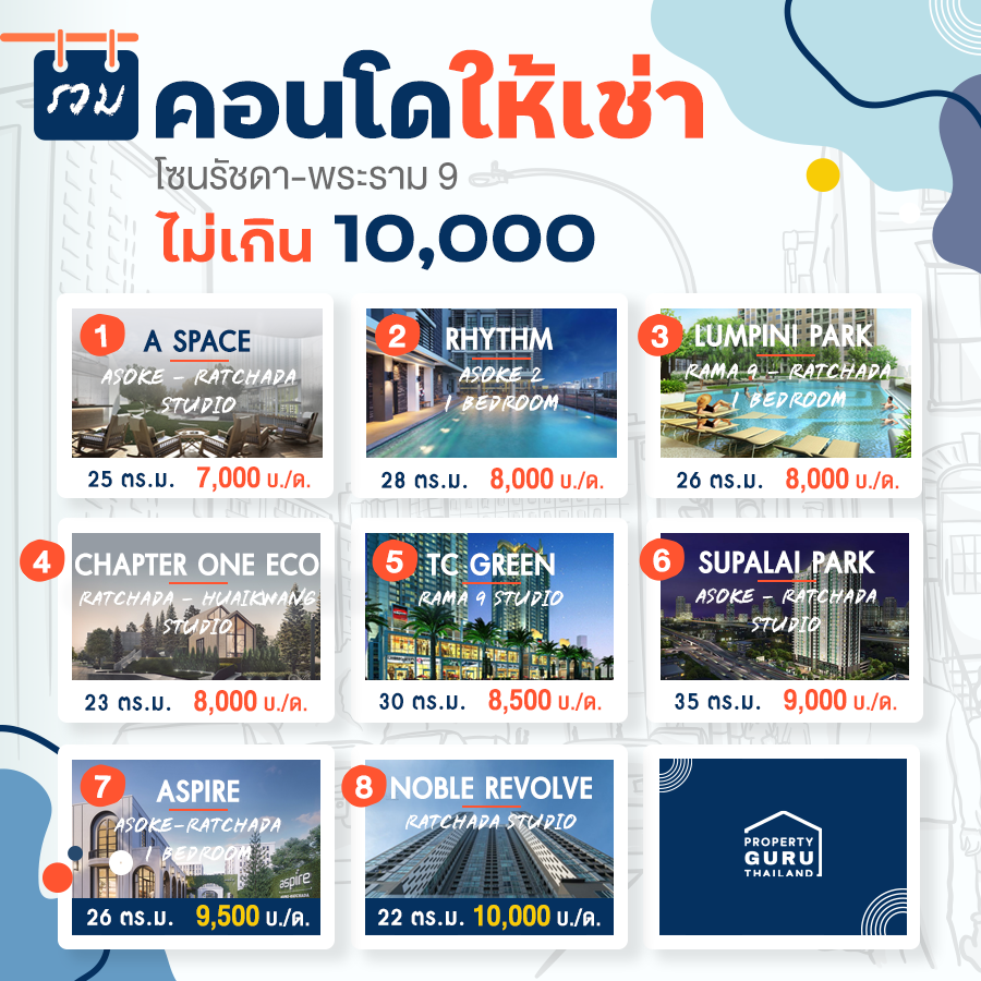 เช่าคอนโดใกล้ที่ทำงานโซน "รัชดา-พระราม 9" ราคาไม่ถึง 10,000 มีที่ไหนบ้าง?