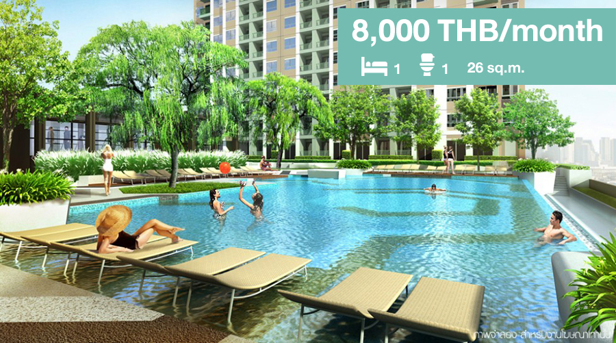 ลุมพินี พาร์ค พระราม 9 - รัชดา (Lumpini Park Rama 9) 1 ห้องนอน 1 ห้องน้ำ 26 ตารางเมตร ราคาเช่า/เดือน 8,000 บาท