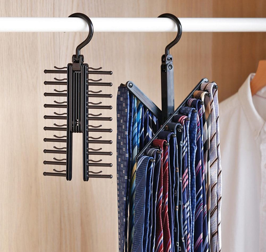 ที่แขวนเนคไทสีดำแบบ 20 ช่อง สามารถหมุนได้ 360 องศา สำหรับจัดเก็บเนคไท หรือเก็บผ้าพันคอ