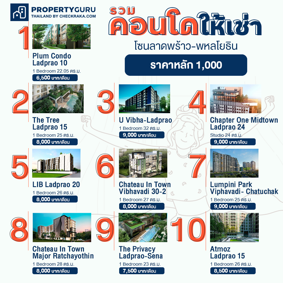 มีเงินหลักพัน...เช่าคอนโดใกล้ที่ทำงานโซนลาดพร้าว-พหลโยธิน ที่ไหนได้บ้าง?