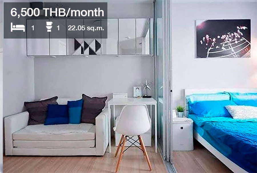 ห้องที่ปล่อยเช่าเป็นแบบ 1 ห้องนอน 1 ห้องน้ำ ขนาด 22.05 ตร.ม. ราคาเช่า 6,500 บาท/เดือน ประกาศเช่าจาก