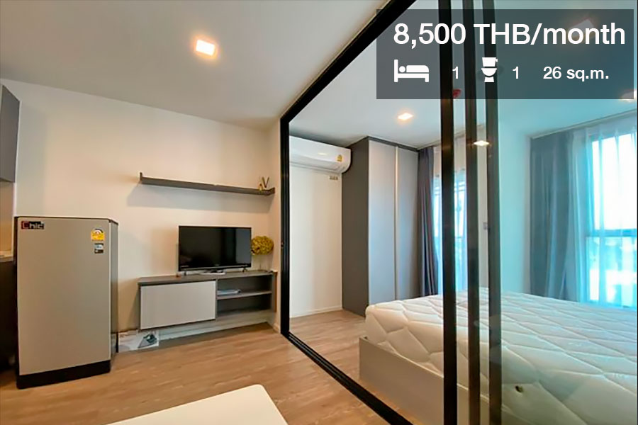 ห้องที่ปล่อยเช่าเป็นแบบ 1 ห้องนอน 1 ห้องน้ำ ขนาด 26 ตร.ม. ราคาเช่า 8,000 บาท/เดือน ประกาศเช่าจาก