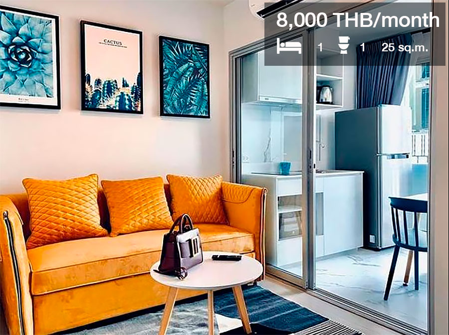 ห้องที่ปล่อยเช่าแบบ 1 ห้องนอน 1 ห้องน้ำ ขนาด 25 ตร.ม. ราคาเช่า 8,000 บาท/เดือน ประกาศเช่าจาก