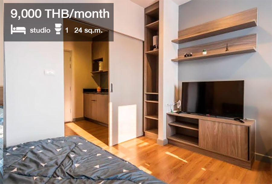 ห้องที่ปล่อยเช่าเป็นห้องสตูดิโอ ขนาด 24 ตร.ม. ราคาเช่า 9,000 บาท/เดือน ประกาศเช่าจาก