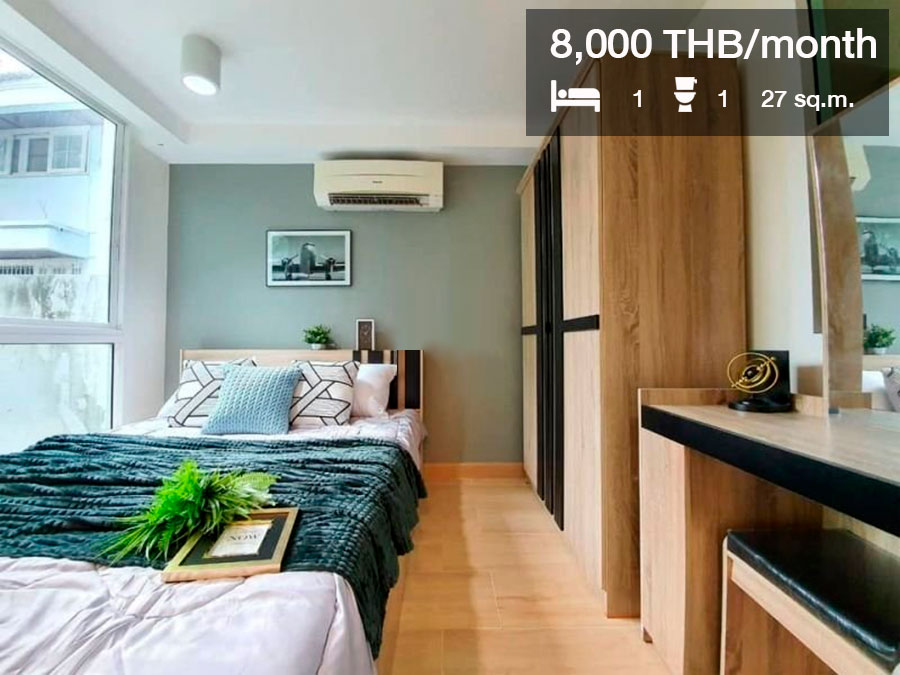 ห้องที่ปล่อยเช่าเป็นแบบ 1 ห้องนอน 1 ห้องน้ำ ขนาด 27 ตร.ม. ราคาเช่า 8,000 บาท/เดือน ประกาศเช่าจาก