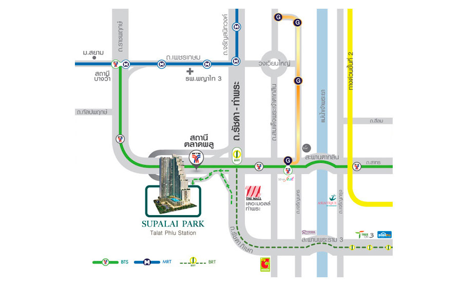 | Altitude Unicorn สาทร-ท่าพระ | Supalai Park สถานีตลาดพลู |