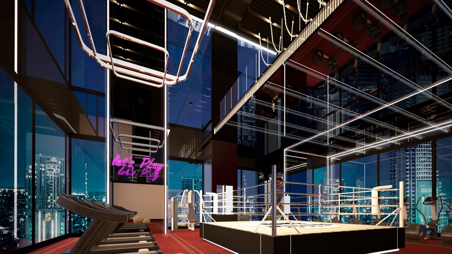 ห้องฟิตเนส เซ็นเตอร์ ออกกำลังกายได้ทั้ง Cardio, Free Weight Zone, หน้าผาจำลอง, บ็อกซิ่ง และโยคะฟลาย