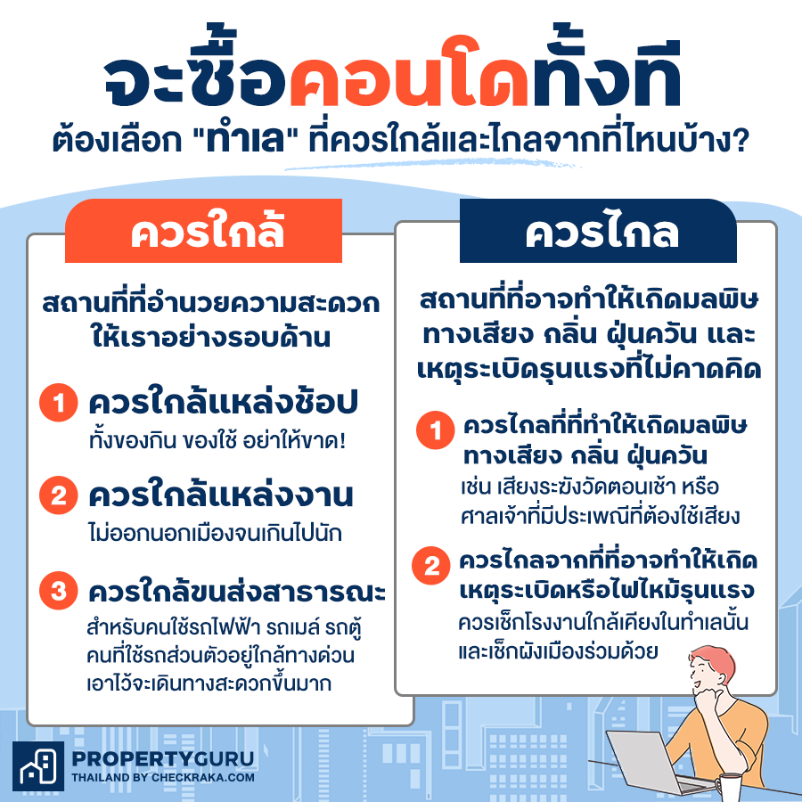 5 ทริคเลือกซื้อคอนโดยุค Work From Home เน้นอะไร? ให้ใช้ชีวิตได้ปลอดภัยและคุ้มค่าที่สุด ควรไกล : สถานที่ที่อาจทำให้เกิดมลพิษทางเสียง กลิ่น ฝุ่นควัน และเหตุระเบิดรุนแรงที่ไม่คาดคิด