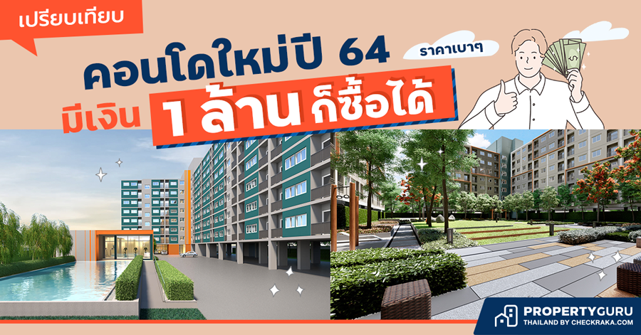 เปรียบเทียบคอนโดใหม่ปี 64 ราคาเบาๆ มีเงิน 1 ล้านก็ซื้อได้