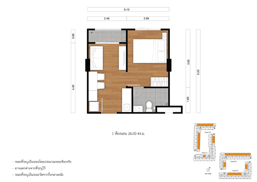 ที่นี่ สำหรับวันนี้จะยกตัวอย่างห้องแบบ 1 ห้องนอน ขนาด 26.00 ตร.ม. มาให้ชมกัน
