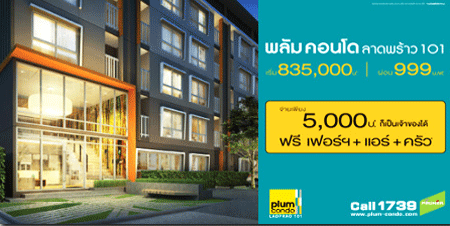 สนใจผ่อนสบายๆ กับโปรโมชั่นฟรีๆ ของ พฤกษาฯ ติดต่อ 1739 หรือ ดูข้อมูลโครงการได้ที่ http://www.plum-condo.com/ladprao101/index.html