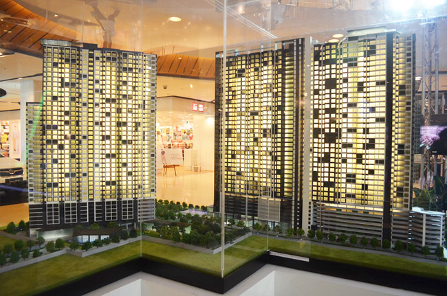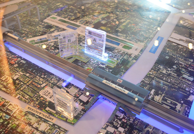 model โครงการ "เดอะทรี อินเตอร์เชนจ์" ด้านขวามือคืออาคาร A ส่วนด้านซ้ายคืออาคาร B