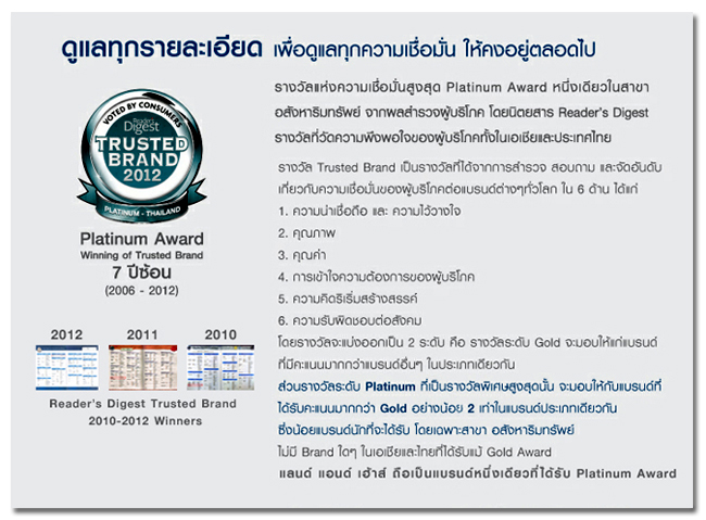 แลนด์ แอนด์ เฮ้าส์ ได้รับรางวัล Trusted Brand 2012