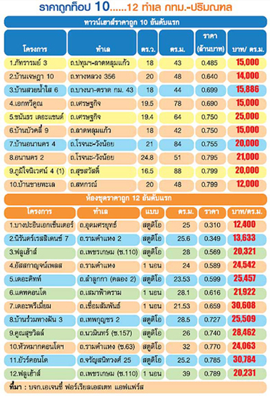 ที่อยู่อาศัยราคาถูกยังเป็นขวัญใจผู้บริโภคตลาดกลาง-ล่างตลอดกาล "ดร.โสภณพรโชคชัย" ประธานกรรมการ บจก.เอเจนซี่ ฟอร์ เรียลเอสเตทแอฟแฟร์ส จัดทำผลสำรวจบ้าน และคอนโดมิเนียมราคาถูกที่สุดในเขตกรุงเทพฯ และปริมณฑล ผลสำรวจพบว่า ทาวน์เฮ้าส์ราคาถูกสุดมีราคาเพียง 4.85 แสนบาท ที่ตั้งบริเวณถ.ปทุมธานี-ลาดหลุมแก้ว เป็นแบบชั้นเดียว 43 ตารางเมตร ที่ดิน 18 ตารางวา ส่วนห้องชุดที่ราคาถูกที่สุด มีราคาเพียง 3.1 แสนบาท ที่ตั้ง ถ.อุดมศรยุทธ์ ในโครงการบางปะอินเอกเซ็นเตอร์