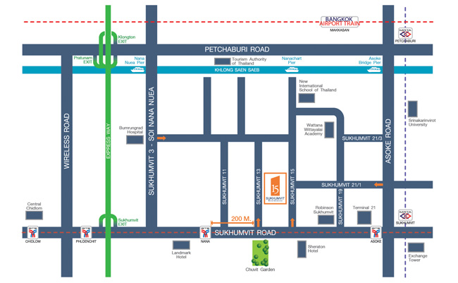 โครงการ 15 สุขุมวิท เรสซิเดนซ์ คอนโดทำเลดี เดินไปขึ้นรถไฟฟ้าได้ทั้ง BTS นานา, BTS อโศก, และ MRT สุขุมวิทเตรียมจัด Promotion ในงาน Luxury Living 2013 By Bangkok Post ที่ Central World ระหว่างวันที่ 12-16 มิ.ย. 56 เจ้าของโครงการคือ บริษัท วีเอสเอสแอล เอ็นเตอร์ไพรส์ โครงการนี้เป็นคอนโด High Rise สูง 25 ชั้น บนพื้นที่กว่า 2 ไร่ ทำเลตั้งอยู่ระหว่างซอยสุขุมวิท 13 และ 15 ให้การเดินทางทุกที่ใกล้สำหรับคุณ เพียง 400-450 เมตร ถึง BTS นานา และ 500-550 เมตร ถึง MRT สุขุมวิท และ BTS อโศกพร้อมพื้นที่จอดรถประมาณ 70% บรรยากาศเงียบสงบ แต่รายล้อมไปด้วยความสะดวกสบาย และสาธารณูปโภคภายในโครงการ