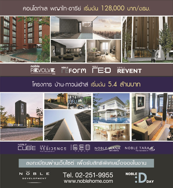 บมจ. โนเบิลดีเวลลอปเมนท์ เตรียมจัดงานใหญ่ชื่องาน Noble D Day ในวันที่ 14-16 มิถุนายน 2556 ที่ Lifestyle Hall ชั้น 2 Siam Paragon เพียง 3 วันเท่านั้น โดยนำโครงการคอนโด ทาวน์เฮ้าส์ และบ้าน 15 โครงการบนไพร์มโลเคชั่นของกรุงเทพ อาทิเพลินจิต สุขุมวิท ทองหล่อ เอกมัย รัชดา อารีย์ พหลโยธิน และพัฒนาการ มาเข้าร่วมแคมเปญนี้ด้วย โดยงานนี้เป็นงานอลังการสุดใหญ่ของโนเบิลครั้งแรกในรอบ 20 ปี และส่วนลดพิเศษทั้งหมดในงานนี้สำหรับบางยูนิต หรือบางหลังอาจสูงถึง 3 ล้านบาท