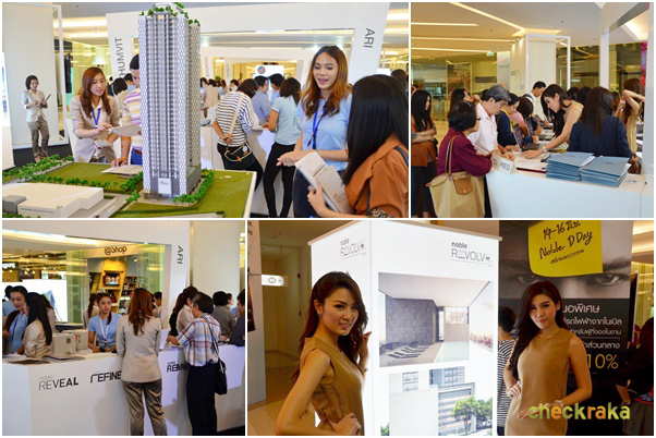 เปิดฉากแล้วสำหรับงานเด่นงานดังครั้งแรกในรอบ 20 ปีของ บมจ. โนเบิล ดีเวลลอปเมนท์ ("โนเบิล") ที่นำโครงการทั้งบ้าน และคอนโดกว่า 16 โครงการมาโชว์เคส โดยงานนี้ทางโนเบิลได้นำคอนโดมิเนียมตามทำเลเด่นใกล้รถไฟฟ้าอย่าง เพลินจิต, สุขุมวิท, อารีย์-พญาไท และรัชดา รวมไปถึงโครงการบ้าน-ทาวน์เฮ้าส์ดีไซน์โดนๆ อีกหลายโครงการมารวบรวมไว้ในงานเดียว และเสนอขายพร้อมโปรโมชั่นสุดพิเศษให้แก่ผู้ที่สนใจ และลงทะเบียนผ่านทางเว็บไซต์ของโนเบิลมาตลอดในช่วง 2-3 สัปดาห์ที่ผ่านมา ซึ่งทางทีมงาน CheckRaka.com ของเราก็ได้ไปเยี่ยมชมงาน "Noble D Day" ในตอนเช้าของงานวันแรก คือวันศุกร์ที่ 14 มิถุนายน 2556 ที่ห้างสรรพสินค้าสยามพารากอน ชั้น 2 โซน Life Style Hall และได้นำภาพบรรยากาศพร้อมรายละเอียดโครงการคร่าวๆ ในงานมาให้พวกเราชาว CheckRaka.com ได้ชมกันตามนี้ค่ะ