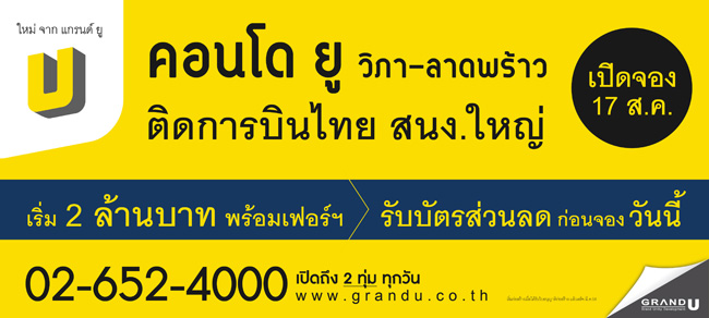 แกรนด์ ยูนิตี้ เปิดจอง คอนโด ยู วิภา - ลาดพร้าว (Condo U Vibha Ladprao) 17 ส.ค. 56 นี้ เริ่ม 2 ล้านบาท