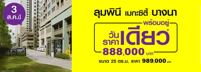 ลุมพินี เมกะซิตี้ บางนา จัดโปรโมชั่น วันเดียว ราคาเดียว 888,000 บาท