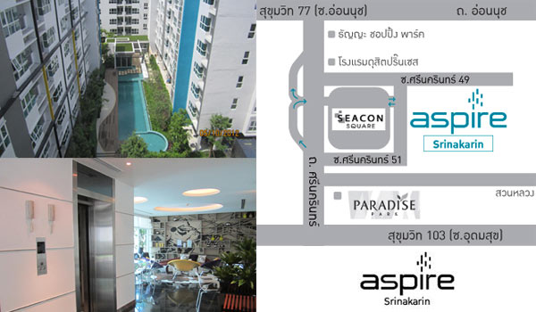 ภาพสถานที่จริงพร้อมแผนที่โครงการจาก AP คอนโดสร้างเสร็จพร้อมอยู่ ตรงข้าม ม.กรุงเทพ เดินทางสะดวกใกล้ทางด่วน และ BTS เอกมัย