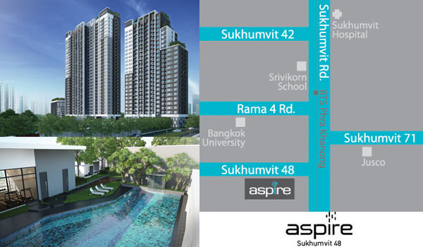 ภาพสถานที่พร้อมแผนที่โครงการจาก AP คอนโดแต่งครบ ตั้งอยู่ในซอยสุขุมวิท 48 เดินทางสะดวกใกล้ BTS พระโขนง และทางด่วน (ความคืบหน้าโครงการโดยรวม ก.ค. 56 ก่อสร้างแล้ว 22% โดยงานโครงสร้างก่อสร้างแล้ว 40%)
