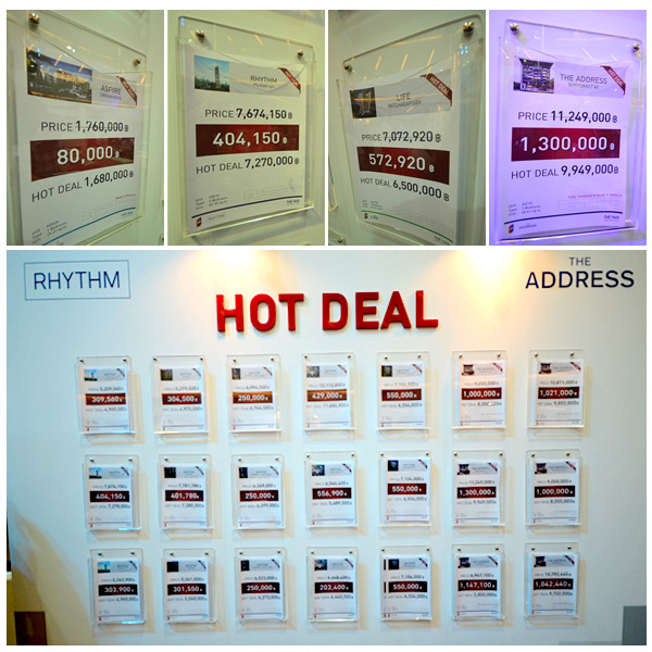 - "HOT DEAL" คอนโดยูนิตพิเศษที่ทาง AP ได้คัดสรรมา หลากหลายทำเล ครบทุกแบรนด์ มอบส่วนลดเงินสดสุดกระชากใจให้กับลูกค้าภายในงาน สูงสุดถึง 1,300,000 บาท!