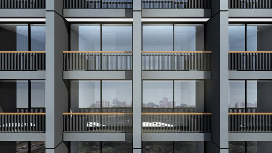 สีของอาคารออกเทาเข้มผสมม่วงเข้มสไตล์โนเบิล