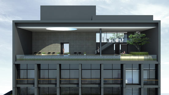 สระว่ายน้ำแบบ Infinity Edge Pool (ด้านหน้ากว้างของสระหันไปทางถนนสีลม)