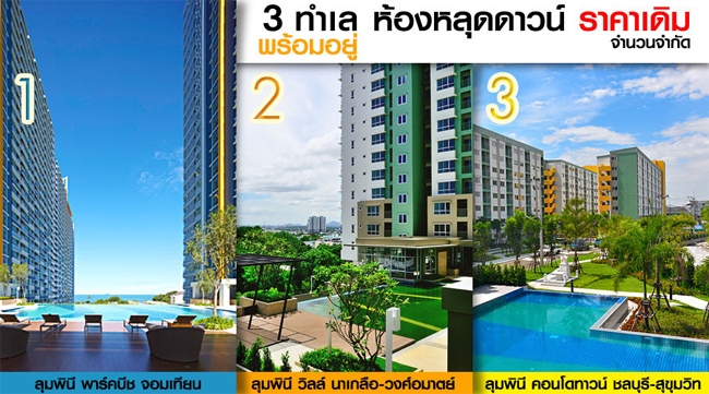 - ลุมพินี วิลล์ นาเกลือ-วงศ์อมาตย์ (Lumpini Ville Naklua-Wongamat) ติดถนนนาเกลือ วงศ์อมาตย์
