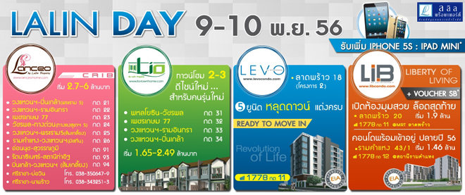 ลลิล พร็อพเพอร์ตี้ จัดโปรโมชั่นพิเศษ "LALIN DAY" 9-10 พฤศจิกายน 56 นี้