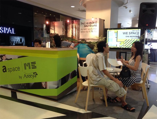 บรรยากาศของบูธ a Space ME Rattanathibet มีผู้ที่สนใจทยอยเข้ามาสอบถามตลอดทั้งวันค่ะ