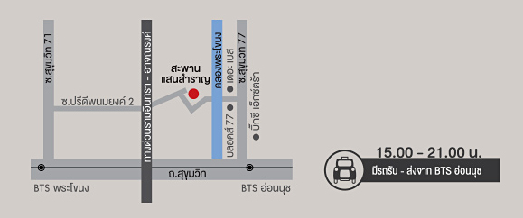 สำหรับผู้ที่สนใจเชิญร่วมสนุกในงานนี้ได้ในวันที่ 14 - 15 ธ.ค. 56 ที่จะถึงนี้ ตั้งแต่เวลา บ่าย 3 ถึง 3 ทุ่ม ที่สะพานแสนสำราญ สุขุมวิท 77 (ตามแผนที่ด้านล่าง)