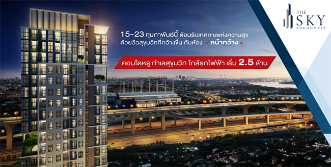 THE SKY สุขุมวิท คอนโดหรู บนทำเลสุขุมวิทใกล้ BTS อุดมสุข และทางด่วนบางนา แวดล้อมด้วยห้างสรรพสินค้าชั้นนำ ตอบรับการใช้ชีวิตระดับ Elite Class ด้วยสิ่งอำนวยความสะดวกครบครัน เพิ่มความเป็นส่วนตัวด้วย One Card Access เข้าออกเฉพาะชั้น เริ่ม 2.5 ล้านบาท ลงทะเบียนออนไลน์ เลือกรับทันที