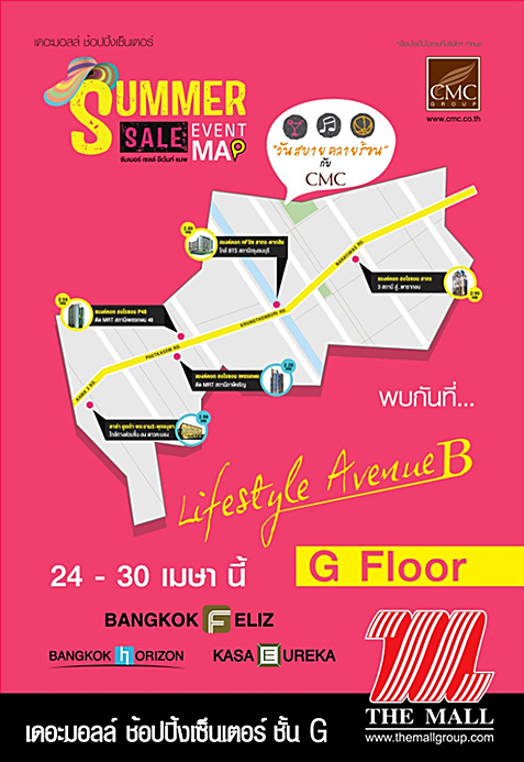CMC Summer Sale Event 4 Air "วันสบาย คลายร้อน กับ CMC" วันที่ 24 - 30 เมษายน 2557 เดอะมอลล์บางแค ชั้น G โซน Lifestyle Avenue B เผย 4 แคมเปญเด็ดเอาใจลูกค้า เพิ่มอำนาจในการตัดสินใจให้ลูกค้าสามารถครอบครองคอนโด และทาวน์โฮม สุดหรูที่เตรียมมาเพื่อทุกท่านที่กำลังมองหาที่พักอาศัยซึ่งมาพร้อมกับทำเลคุณภาพ กับ 4 แคมเปญเด็ด