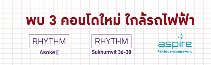 - ริธึ่ม อโศก (RHYTHM Asoke) WHERE THE WIND BLOWS...AND LIFE FLOWS สถาปัตยกรรมแนวเปิดรับลมบริสุทธิ์ ให้พัดผ่านจากทิศเหนือ-ใต้ สอดประสานการตกแต่งภายนอกที่สะท้อนถึงสายลม