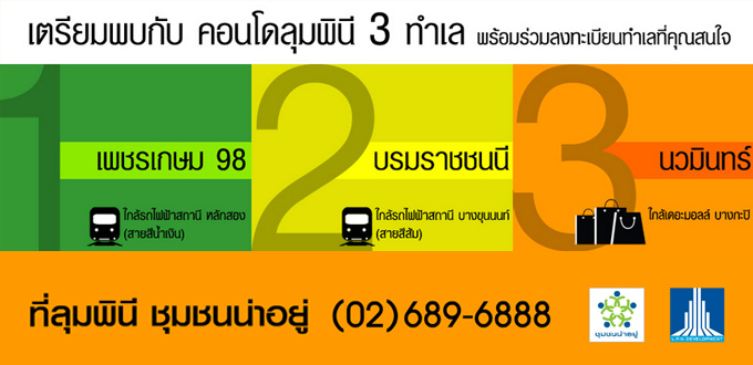 เตรียมพบกับคอนโดลุมพินี 3 ทำเลใหม่ เพชรเกษม98 บรมราชชนนี และนวมินทร์...เร็วๆนี้