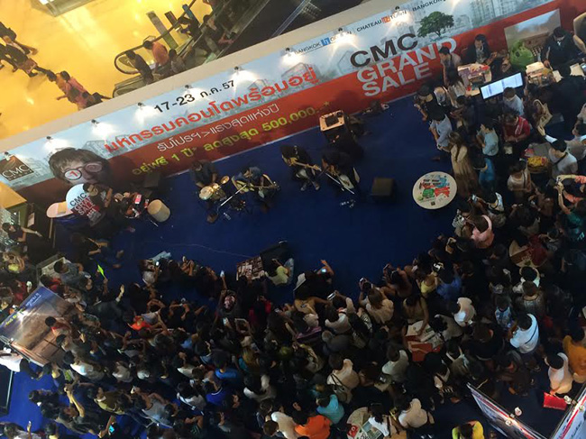 CMC Grand Sale ณ ลานโปรโมชั่น ชั้น 1 โซน C เปิดตัวอย่างอย่างอบอุ่น โดยมีผู้สนใจเข้าชมโครงการอย่างล้นหลามภายในงานเต็มไปด้วยสีสันของขบวนคอนโดสุดหรูที่นำมาให้คุณได้สัมผัส อาทิ ชาโตว์ อินทาวน์ สุขุมวิท 64 สกายมูน, ชาโตว์ อินทาวน์ พระราม 8 ริเวอร์ไซด์, ชาโตว์ อินทาวน์ สุขุมวิท 64, ชาโตว์ อินทาวน์ วิภาวดี 10, ชาโตว์ อินทาวน์ สุขุมวิท 62/1 เฟส 2, ชาโตว์ อินทาวน์ เมจอร์ รัชโยธิน 2, ชาโตว์ อินทาวน์ รัชดา 20 เฟส 2, แบงค์คอก เฟ' ลิซ วิภาวดี 30 พร้อมมินิคอนเสิร์ตจากสงกรานต์ เดอะวอยซ์ รวมทั้งโปรโมชั่นภายในงานกับอยู่ฟรี 1 ปี, ผ่อนสบายๆ 0% 10 เดือน, ส่วนลดสูงสุด 500,000 บาท, Cash Back 100,000 บาท, ฟรีเฟอร์นิเจอร์พร้อมเครื่องใช้ไฟฟ้า และจอง+ทำสัญญาในงาน ฟรี Samsung Galaxy S5 และเหล่า Pretty ที่มาสร้างสีสันภายในงาน ไปชมภาพบบรรยากาศในงานกันเลยค่ะ