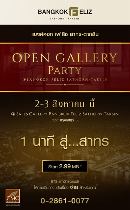 แบงค์คอก เฟ'ลิซ สาทร-ตากสิน พร้อมให้คุณท้าพิสูจน์!!! ความเอ็กซ์คลูซีฟกับโปรโมชั่นสุดพิเศษผ่อนสบายๆ 0% นาน 10 เดือน, ฟรี เฟอร์นิเจอร์ และจองพร้อมทำสัญญา รับ Samsung Galaxy S5 พิเศษสุดเฉพาะในงานนี้เท่านั้น และภายในงานยังมีกิจกรรมสุดพิเศษที่พร้อมให้คุณสัมผัสอีกมากมาย...