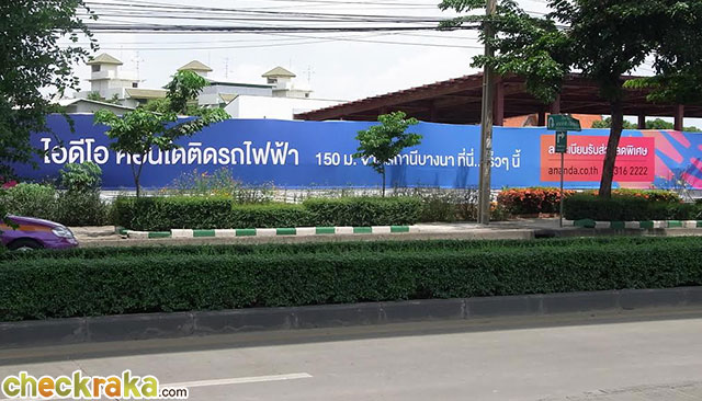 มองจาก BTS สถานีบางนา จะเห็นที่ดินโครงการไกลๆ อยู่ติดกับป้ายสีม่วงๆ ที่เห็นในรูปข้างบน