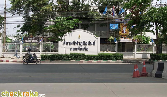 เดินลงสะพานมาจาก BTS บางนา Exit 3 มาเรื่อยๆ จะเจอ "สนามกีฬาภูติอนันต์ กองทัพเรือ"
