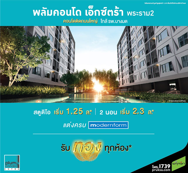 พลัม คอนโด เอ็กซ์ตร้า พระราม 2 แจกทอง !! ทุกห้องก่อนสิ้นเดือนกันยายนนี้