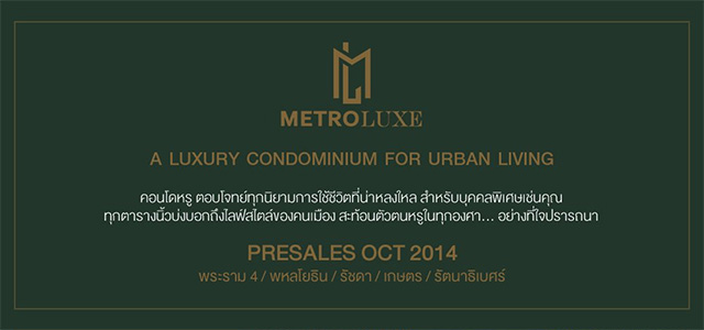 โครงการ METRO LUXE ทั้ง 5 โครงการจะเปิด Pre-Sales ในเดือนตุลาคม 2557 นี้ ณ สำนักงานขายของแต่ละโครงการ