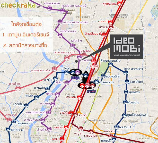 เรามาต่อกันด้วยอีก 2 โครงการจากแบรนด์ IDEO MOBI กันบ้างค่ะ โดยโครงการที่จะพูดถึงอันแรกนี้อยู่ในทำเลบนถนนกรุงเทพ-นนทบุรี ซึ่งมีรถไฟฟ้าสายสีม่วงวิ่งผ่าน เรียกว่าสถานีรถไฟ MRT สายสีม่วง (สถานีบางซ่อน) นี้เหมือนโดนจับวางมาตั้งอยู่หน้าโครงการกันเลยทีเดียว นอกจากนี้ โครงการนี้ก็ใกล้กับ "สถานีกลางบางซื่อ (Bangsue Central Station)" ซึ่งอีกหน่อยจะเป็น Hub ของรถไฟฟ้าเชื่อมต่อหลายสายของทั้งกรุงเทพเลย เรามาชมภาพโครงการนี้กันเลยค่ะ
