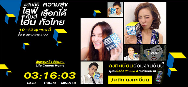 แสนสิริ เตรียมจัดงาน Sansiri Life Come Home อีกครั้ง เปิดโอกาสพิเศษให้คุณได้เลือกความสุขในรูปแบบของ บ้าน คอนโด ทาวน์เฮ้าส์ พร้อมกับโปรโมชั่น และข้อเสนอสุดพิเศษ จาก 11 โครงการทั่วประเทศ ในงาน LIFE COMES HOME ณ ชั้น 5 สยามพารากอน ในวันที่ 10-12 ตุลาคม นี้ และพบกับกิจกรรมดีๆ ที่ให้คุณเลือกเพิ่มความสุขตลอดทั้งงาน