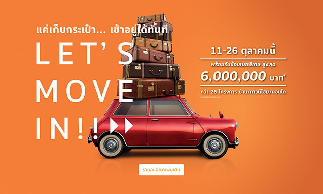 พบกับโปรโมชั่นสินเชื่อพิเศษแห่งปี Let' s move in ระหว่างวันนี้ ถึง 26 ตุลาคม 2557 นี้
