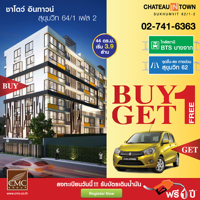 15-16 พฤศจิกายน นี้ ชวนคุณมาพบกันในงาน Cocktail Pool Party ปาร์ตี้ชิวๆ ในบรรยากาศโดนๆ ท่ามกลางสายน้ำ พร้อมโปรโมชั่นสุดพิเศษ BUY 1 GET 1 FREE "ซื้อคอนโด แถมรถ Suzuki Celerio" ที่สำนักงานขายโครงการ (อยู่ในซอยสุขุมวิท 62)
