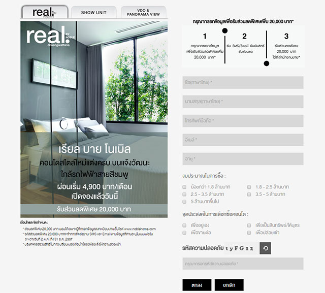 *ส่วนลดพิเศษ 20,000 บาท มอบให้เฉพาะผู้ที่กรอกข้อมูลลงทะเบียนผ่านเว็บไซต์ www.noblehome.com